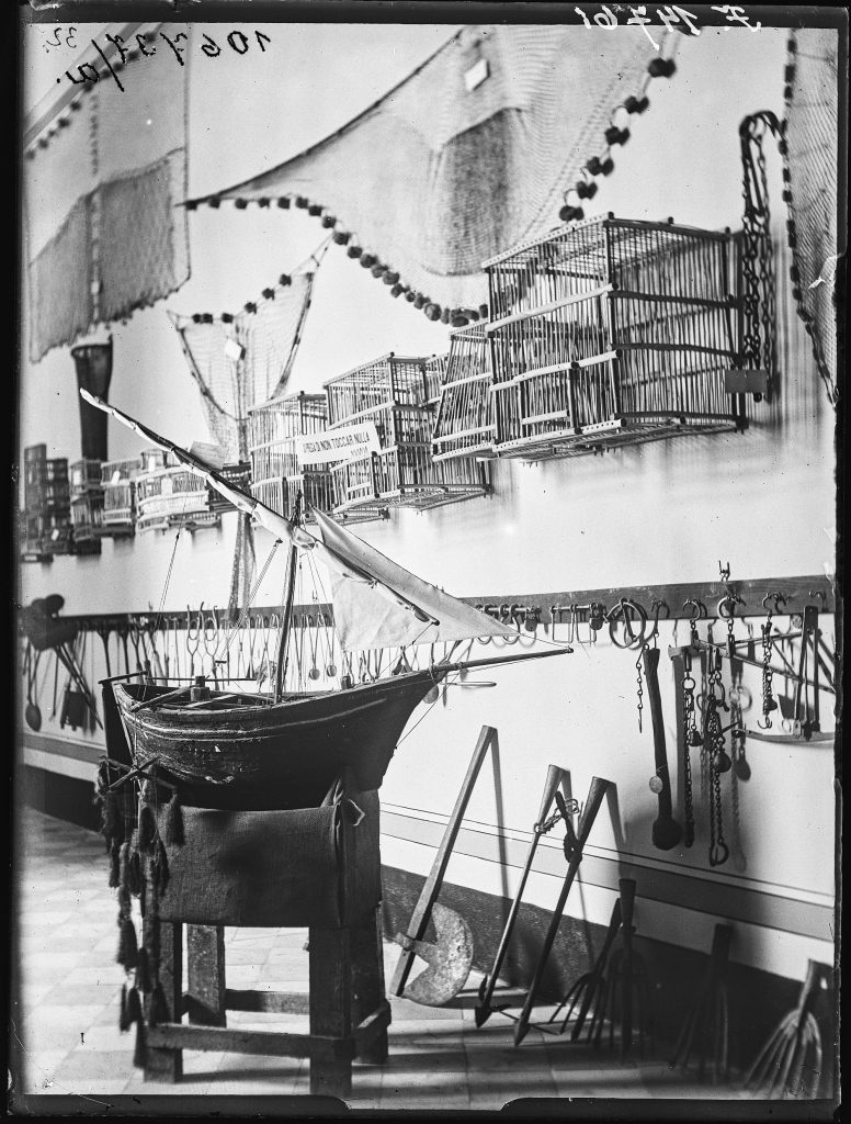 Makoldy látogatása idején a szigeten élők pásztorkodással és halászattal foglalkoztak elsősorban, de nem volt elhanyagolható a korábbi korokban a vadászat és a madarászat szerepe sem. A falra felhelyezett hálók, halászati eszközök változatos típusai is mutatják e két foglalkozás tárgyi eszközeinek sokszínűségét (10. kép). Makoldy a Szicíliáról írt kéziratában (NM EA 19770) külön említi a fényképen látható bárka modelljét. Sajnálta, hogy a látogatásakor csak ez az egy korallhalászatra használt bárkamodell (kereszt alakban kifeszített hálója utal tevékenységére) volt kiállítva. Az 1891-1892. évi kiállításkor a halászatra használt bárkák több régebbi típusú modelljét is láthatták az érdeklődők.