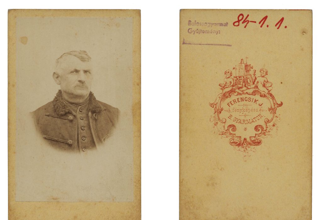 Balassagyarmaton is járt egy igazi utazó fényképész, a franciás nevű Jeanot Ferenc, aki egyike volt a Fényképészeti Lapok említett 1882-es összesítésében megnevezett 26 utazó fotográfusnak. A Honismereti Gyűjteményben van egy bécsi és két balassagyarmati jelzetű fényképe. Az utóbbiak hátlapján a városnév és az aláírás kézírással, a bécsin nyomtatva szerepel. Más gyűjtemények alapján nyitrai jelzetű képeket ismerünk tőle. Ebben a gyűjteményben Perényi János A. Nándortól is található két vizitkép. Neve és „B. Gyarmat” a nyomtatott kartonján olvasható. A verso szerint fényképészeti műterme a Templom utca 85. sz. alatt működött (13-14. kép). Ő is teljesen ismeretlen és semmilyen információval nem rendelkezünk róla, illetve működéséről.